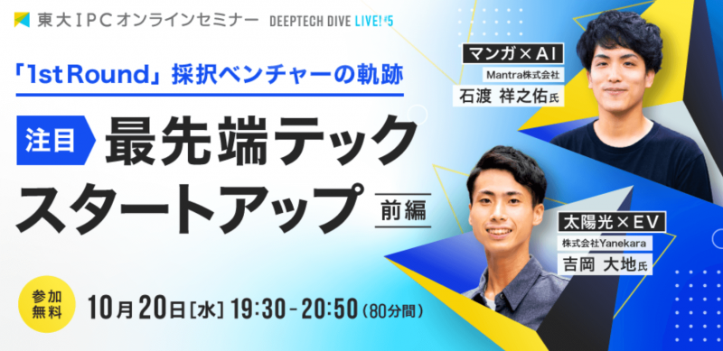 Mantra株式会社・株式会社Yanekara登壇|東大IPC DEEPTECH DIVE Live! #5 1stRound採択ベンチャーの軌跡【前編】ハイライトレポート ※動画あり