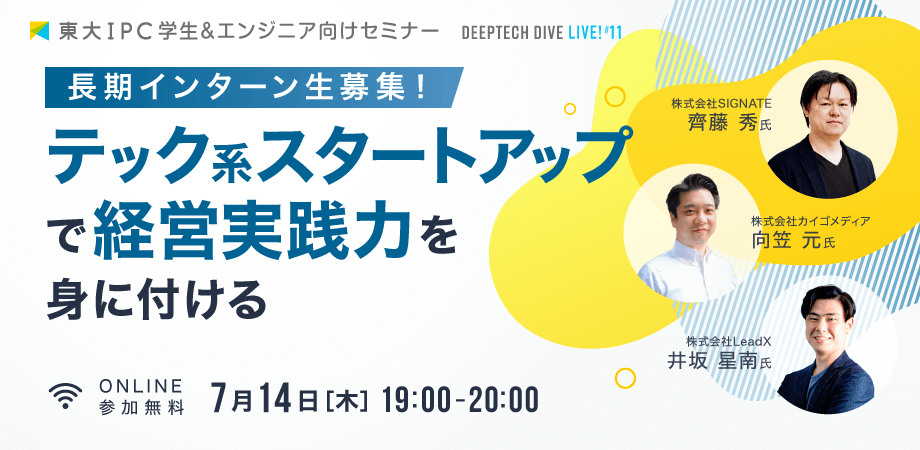 東大IPC DEEPTECH DIVE Live! #11 「東京大学関連の注目テック系スタートアップで長期インターン」ハイライトレポート