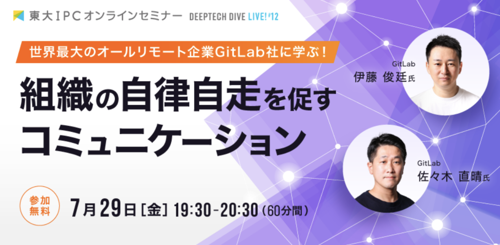 東大IPC DEEPTECH DIVE Live! #12「世界最大のオールリモート企業GitLabに学ぶ!組織の自律自走を促すコミュニケーション」ハイライトレポート