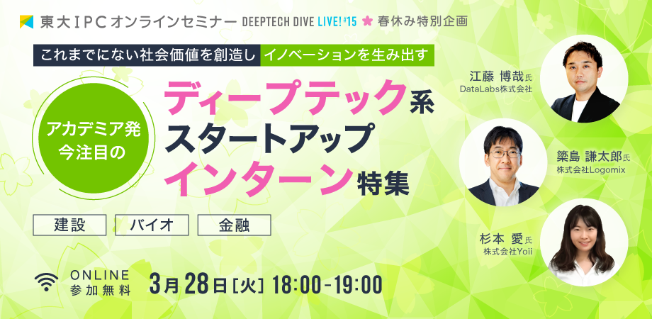東大IPC DEEP TECH DIVE Live! #15 「今注目のアカデミア発ディープテック系スタートアップでインターン!」ハイライトレポート