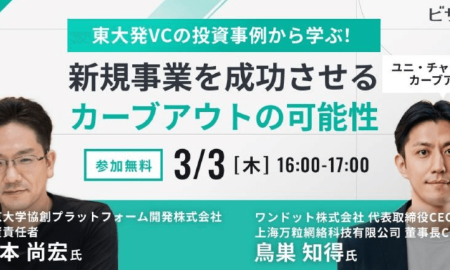 国内トップクラスのカーブアウト投資実績を有する東大IPCが提供する、