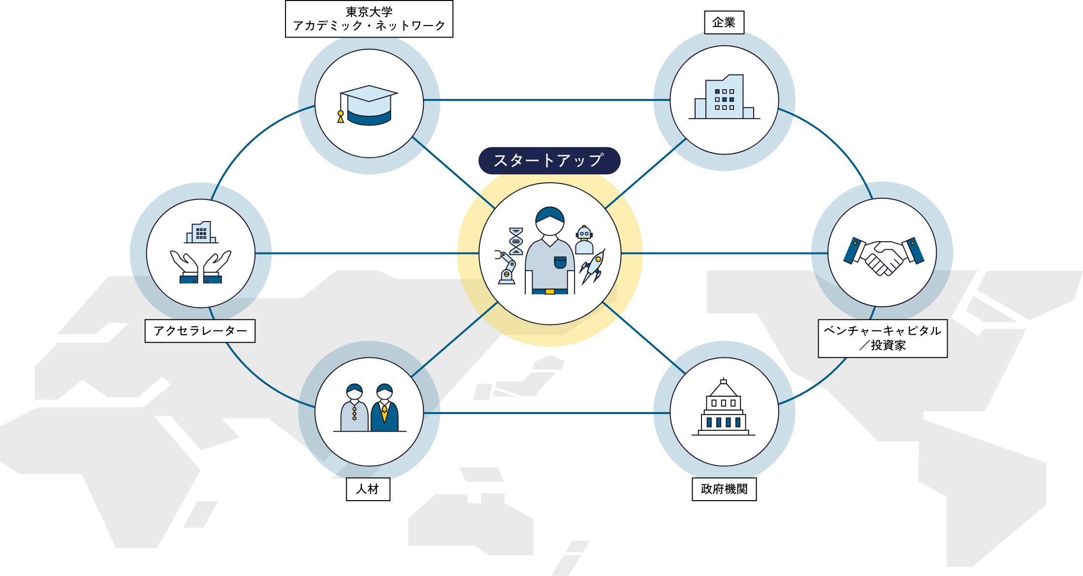 東大IPCは、国内外の企業、学術機関、ベンチャーキャピタル、政府・自治体など幅広いパートナーシップを持ち、世界に伍するユニコーンスタートアップの育成を筆頭に、アカデミア成果を活用したイノベーションの継続した創出・育成、そして世界における日本の産業競争力の強化に資するべく活動していきます。