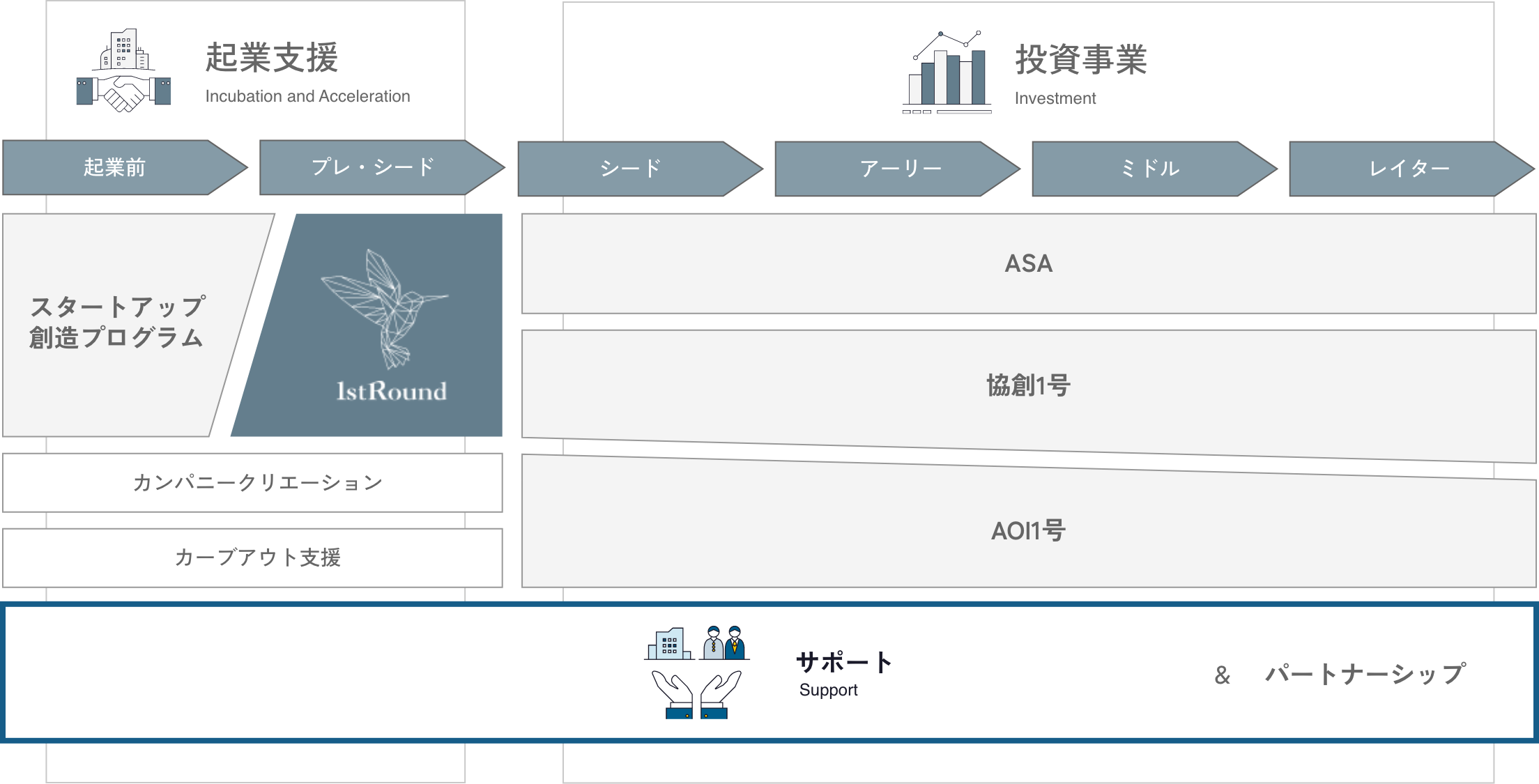 投資先・支援先に対して専門的なネットワークと知見の提供を実現しています。
